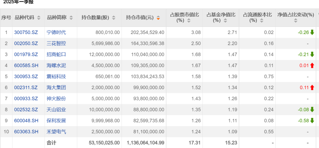 截至一季度末,富国稳健增长混合基金前十大重仓股包括宁德时代、三花智控、招商蛇口、海螺水泥、震裕科技、海大集团、神火股份、天山铝业、保利发展、禾望电气。其中,三花智控、震裕科技、神火股份、禾望电气是基金新进前十大重仓股。